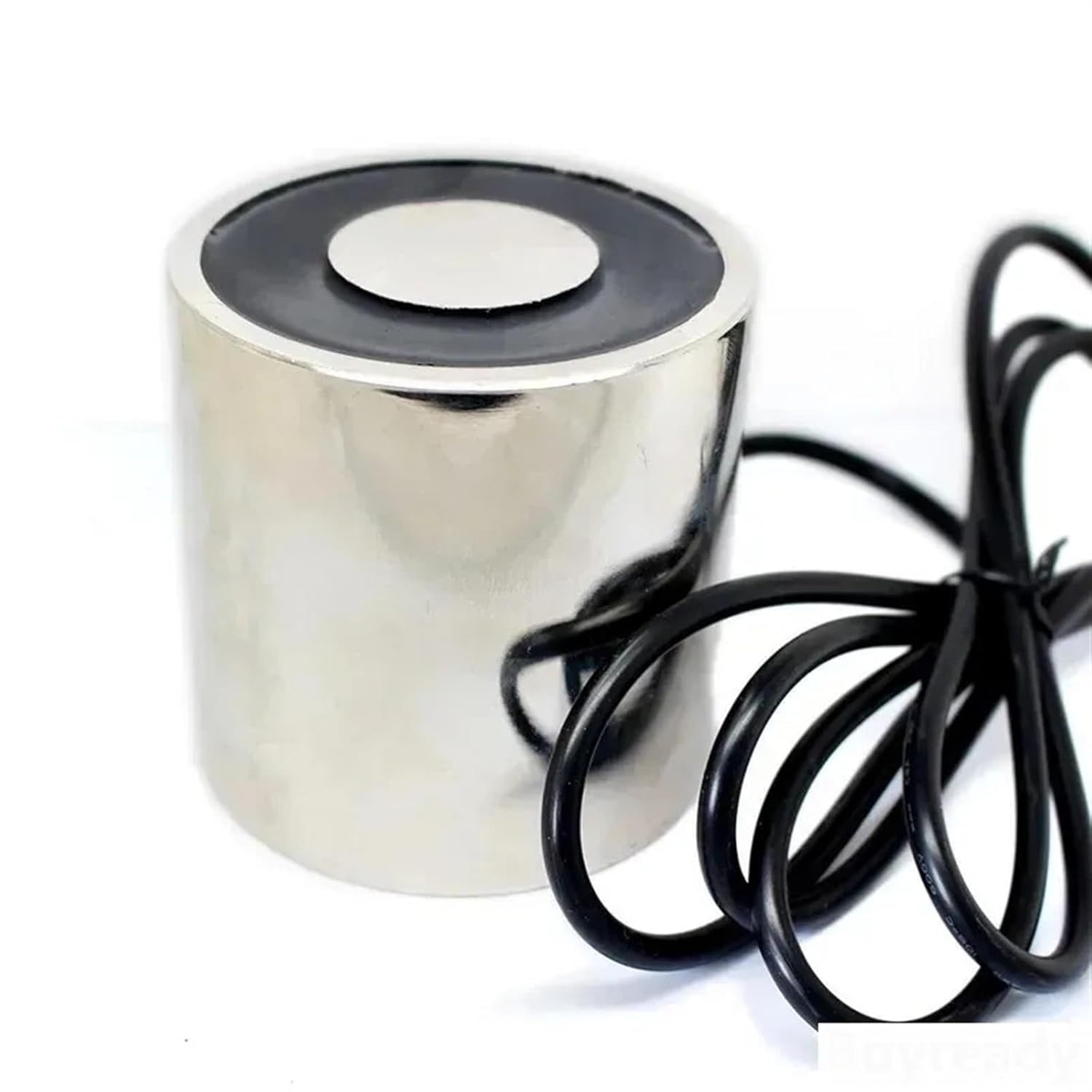 Electroaimant compact avec vis montage et cable connexion. Concu pour maintien electromagnetique et securite industrielle.